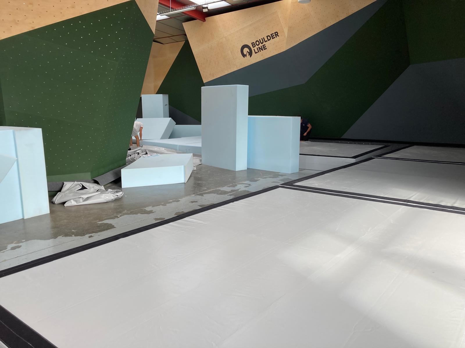 Pour Bloc Session, nous avons fourni et installé des tapis de réception sur mesure, garantissant sécurité et confort aux grimpeurs de tous niveaux.